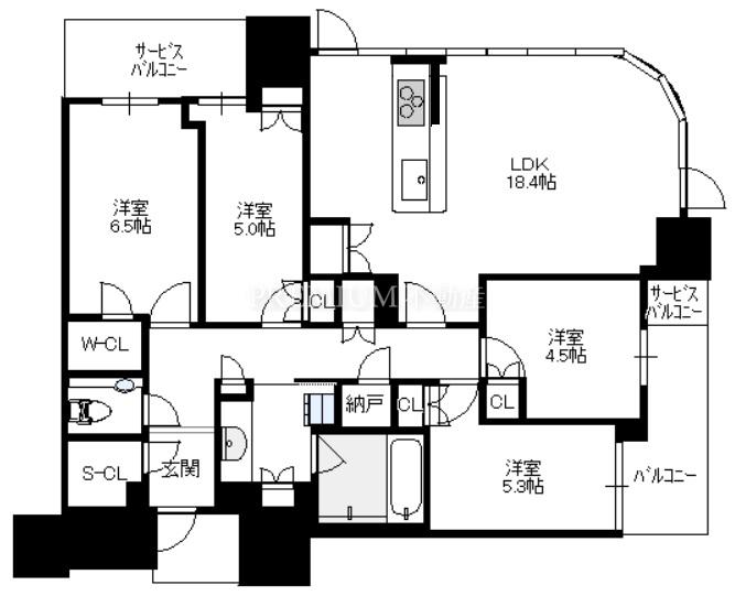 間取り 4LDK(洋6.5 洋5.3 洋5.0 洋4.5 LDK18.4)