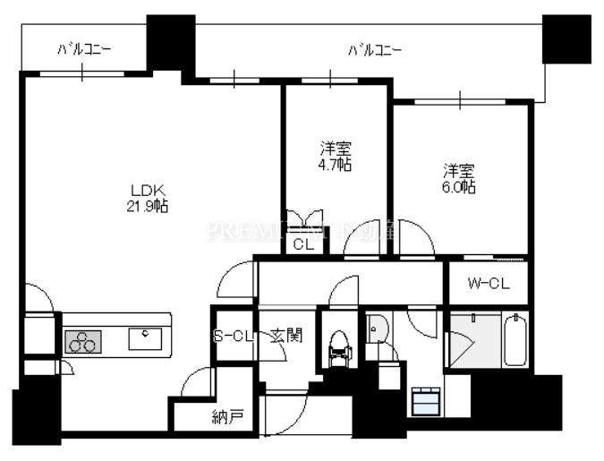 間取り 2LDK(洋6.0 洋4.7 LDK21.9)