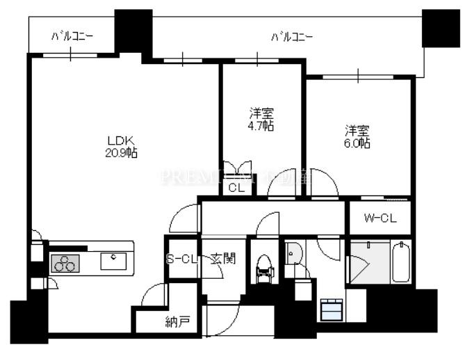 間取り 2LDK(洋6.0 洋4.7 LDK20.9)