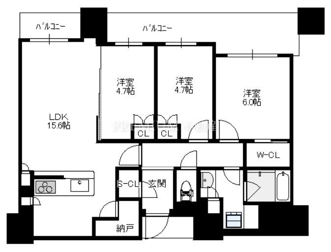 間取り 3LDK(洋6.0 洋4.7 洋4.7 LDK15.6)