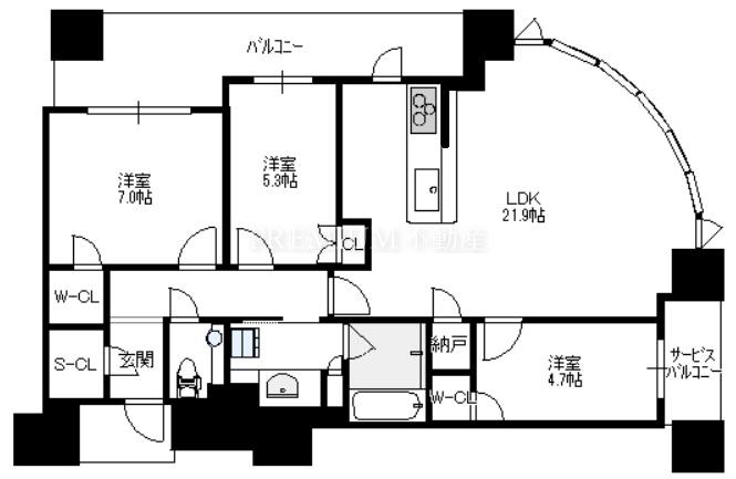 間取り 3LDK(洋7.0 洋5.3 洋4.7 LDK21.9)