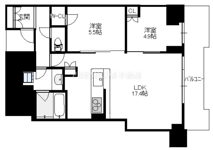 間取り 2LDK(洋6.1 洋4.9 LDK18.4)