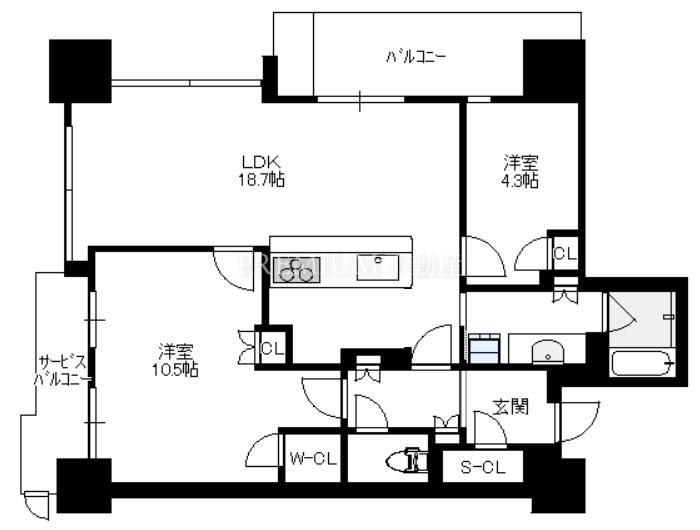 間取り 2LDK(洋10.5 洋4.3 LDK18.7)