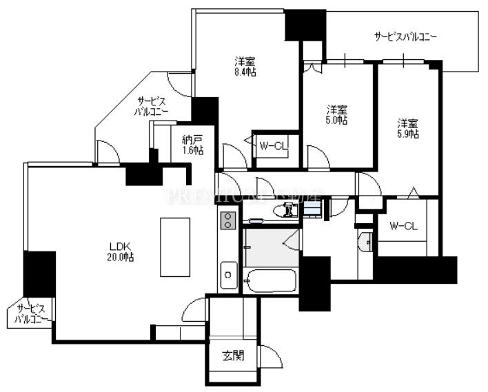 間取り 3SLDK(洋8.4 洋5.0 洋5.0 S2.5 LDK20.0)