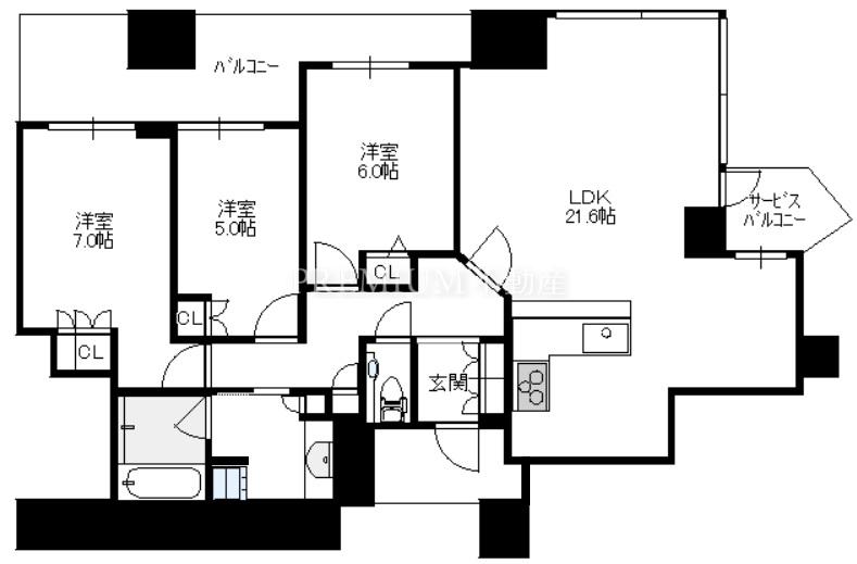 間取り 3LDK(洋7.0 洋6.0 洋5.0 LDK21.6)
