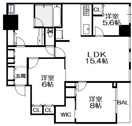 間取り 3LDK(洋8.0 洋6.0 洋5.6 LDK15.4)