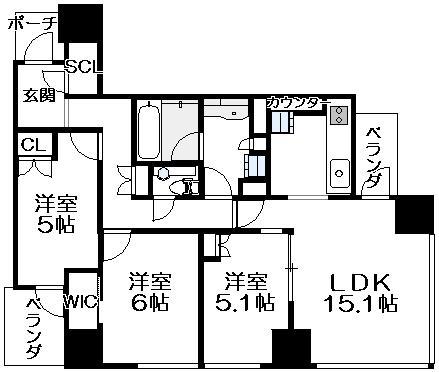 間取り 3LDK(洋6.0 洋5.1 洋5.0 LDK15.1)