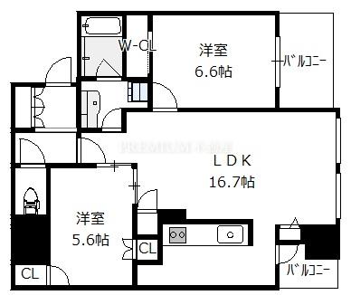 間取り 2LDK(洋6.6 洋5.6 LDK16.7)