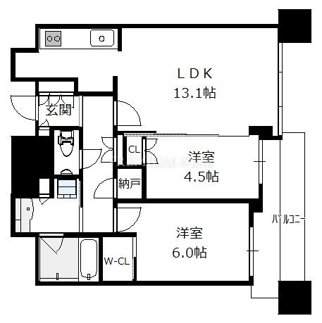間取り 2LDK(洋6.0 洋4.5 LDK13.1)