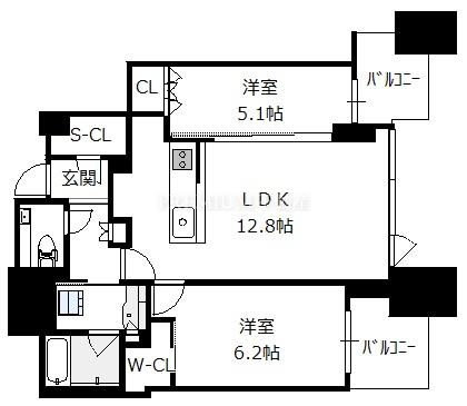 間取り 2LDK(洋6.2 洋5.1 LDK12.8)