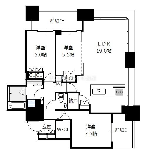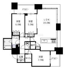 間取り 3LDK(洋7.5 洋6.0 洋5.5 LDK19.0)