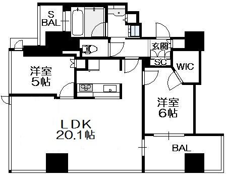 間取り 2LDK(洋6.0 洋5.0 LDK20.1)