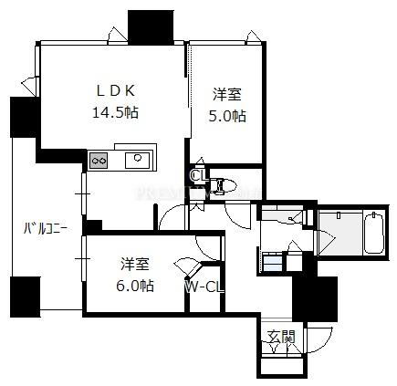 間取り 2LDK(洋6.0 洋5.0 LDK14.5)