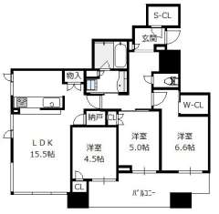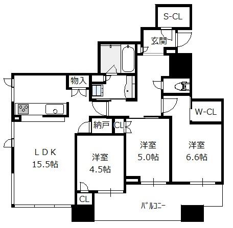 間取り 3SLDK(洋6.6 洋5.0 洋4.5 S0.9 LDK15.5)