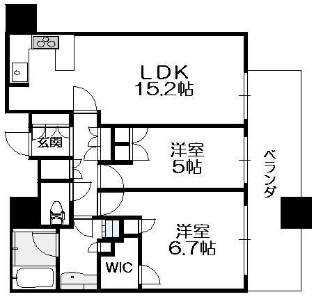 間取り 2LDK(洋6.7 洋5.0 LDK15.2 )