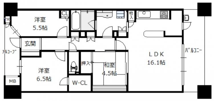 間取り 3LDK(洋6.5 洋5.5 和4.5 LDK16.1)