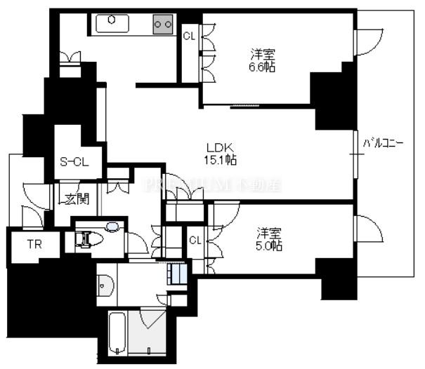 間取り 2LDK(洋6.6 洋5.0 LDK15.1)