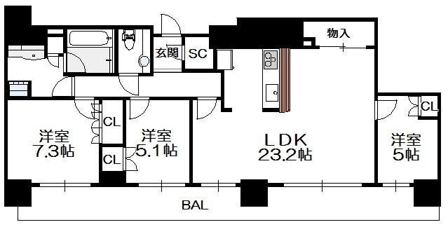 間取り 3LDK(洋7.3 洋5.1 洋5.0 LDK23.2)