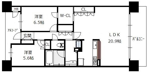 間取り 2LDK(洋6.5 洋5.6 LDK20.9)
