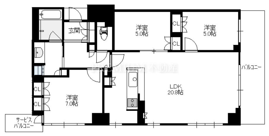 間取り 3LDK(洋7.0 洋5.0 洋5.0 LDK20.8)