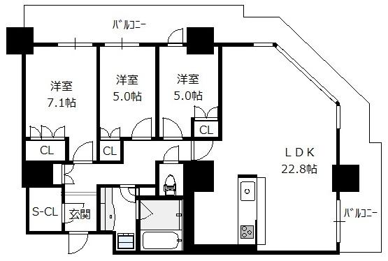 間取り 3LDK(洋7.1 洋5.0 洋5.0 LDK22.8)