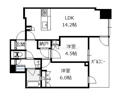 間取り 2LDK(洋6.0 洋4.5 LDK14.2)