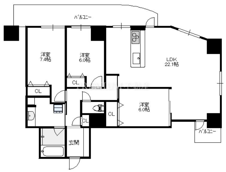 間取り 3LDK(洋7.4 洋6.0 洋6.0 LDK22.1)