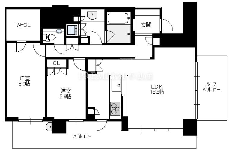 間取り 2LDK(洋8.0 洋5.6 LDK18.8)