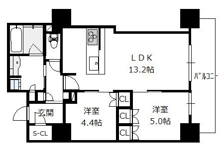 間取り 2LDK(洋5.0 洋4.4 LDK13.2)