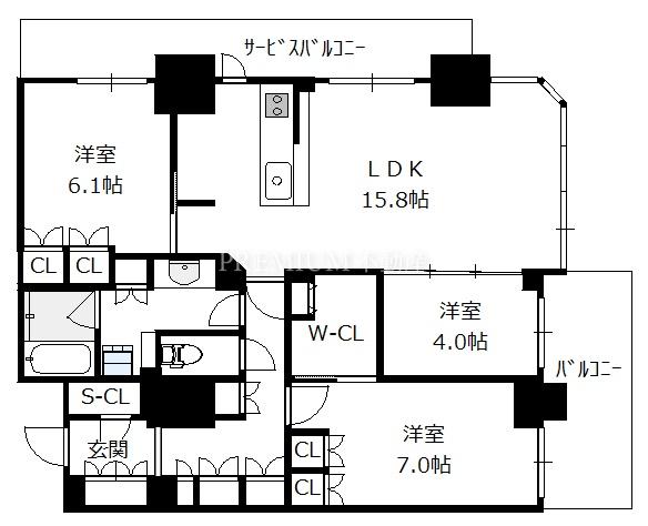 間取り 3LDK(洋7.0 洋6.1 洋4.0 LDK15.8)