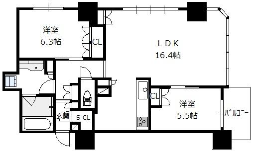 間取り 2LDK(洋6.3 洋5.5 LDK16.4)
