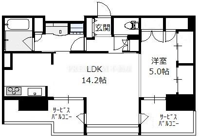 間取り 1LDK(洋5.0 LDK14.2 )