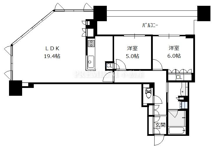 間取り 2LDK(洋6.0 洋5.0 LDK17.4)