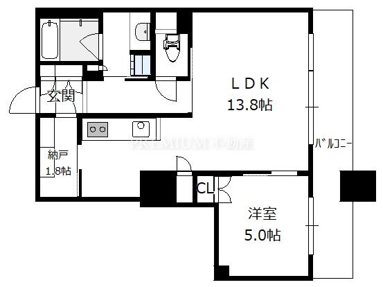 間取り 1SLDK(洋7.3 S1.4 LDK17.2)