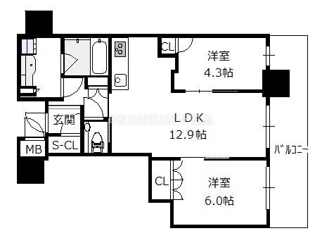 間取り 2LDK(洋6.0 洋4.3 LDK12.9)