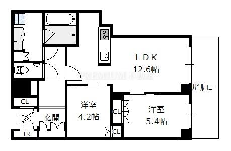 間取り 2LDK(洋5.4 洋4.2 LDK12.6)