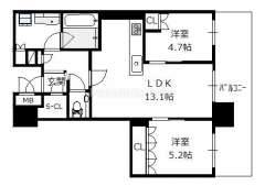 間取り 2LDK(洋5.2 洋4.7 LDK13.1)