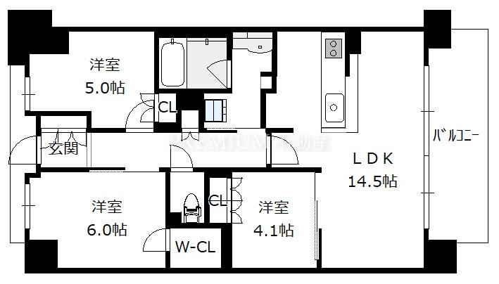 間取り 3LDK(洋6.0 洋5.0 洋4.1 LDK14.5)