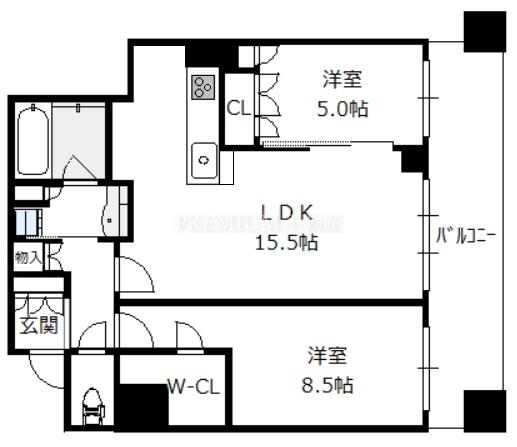 間取り 2LDK(洋8.5 洋5.0 LDK15.5 )