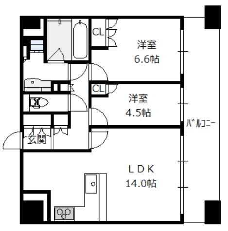間取り 2LDK(洋6.6 洋4.5 LDK14.0)