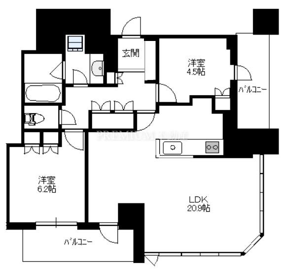 間取り 2LDK(洋6.2 洋4.5 LDK20.9)