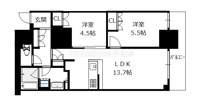 間取り 2LDK(洋5.5 洋4.5 LDK13.7)