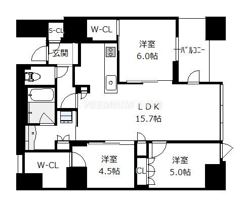 間取り 3LDK(洋6.0 洋5.0 洋4.5 LDK15.7)