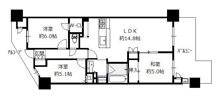 間取り 3LDK(洋6 洋5.1 和5.0 LDK14.8 )