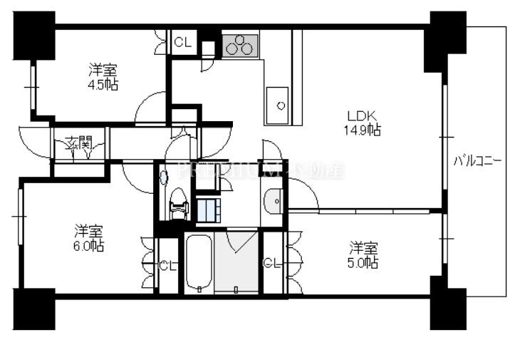 間取り 3LDK(洋6.0 洋5.0 洋4.5 LDK14.9)