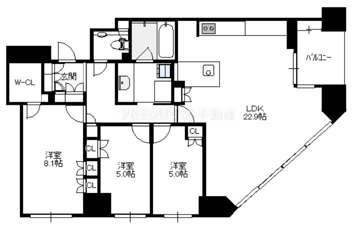 間取り 3LDK(洋8.1 洋5.0 洋5.0 LDK22.9)