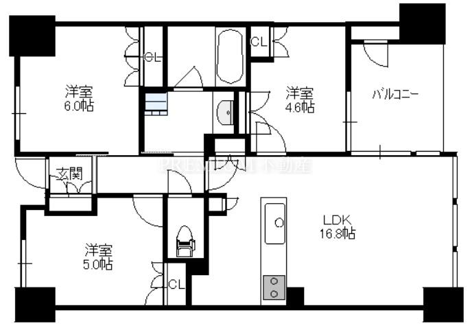 間取り 3LDK(洋6.0 洋5.0 洋4.6 LDK16.8)