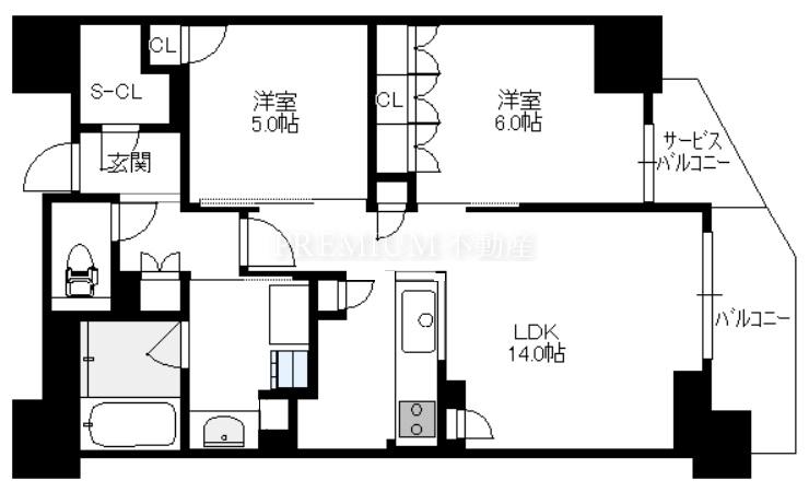 間取り 3LDK(洋6.0 洋5.0 洋4.5 LDK14.3)