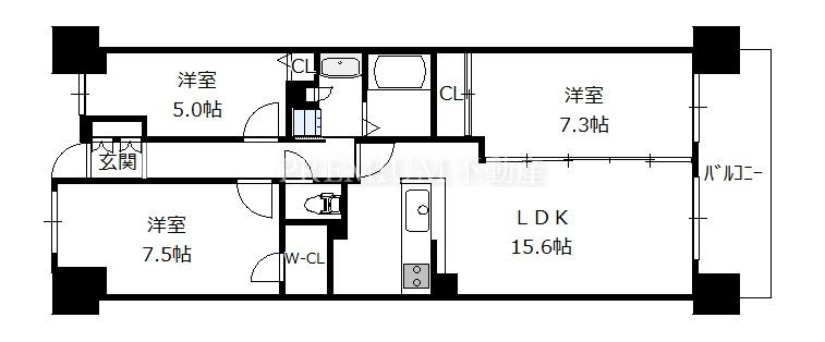間取り 3LDK(洋7.5 洋7.3 洋5.0 LDK15.6)