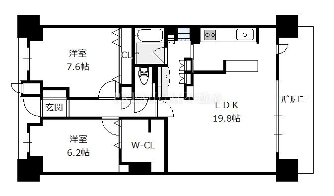 間取り 2LDK(洋7.6 洋6.2 LDK19.8)